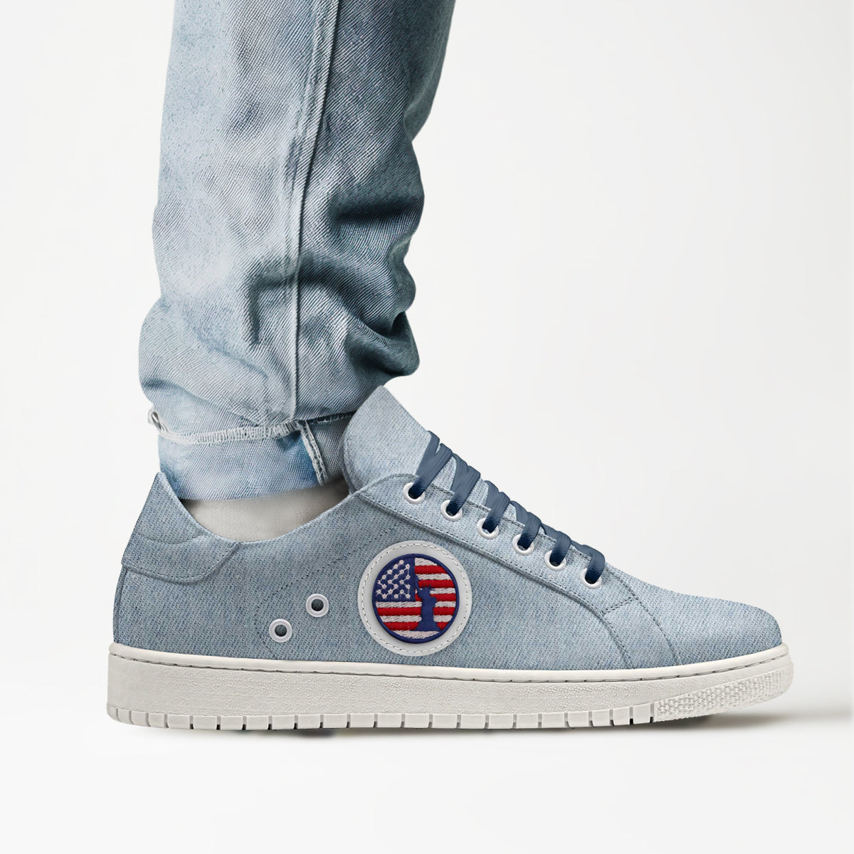 ['FLŌW] is all about ease and grace. These light blue sneakers are crafted from vegan materials that flow naturally with your every movement. Designed for those who appreciate the art of effortless style, ['FLŌW] keeps you in sync with the world around you.